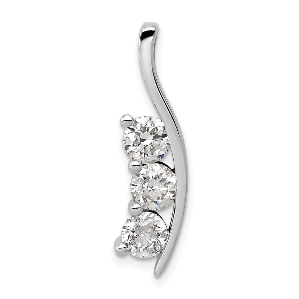 14k White Gold Complete 1.5 carat Three-Stone A Diamond Curved Bar Chain Slide