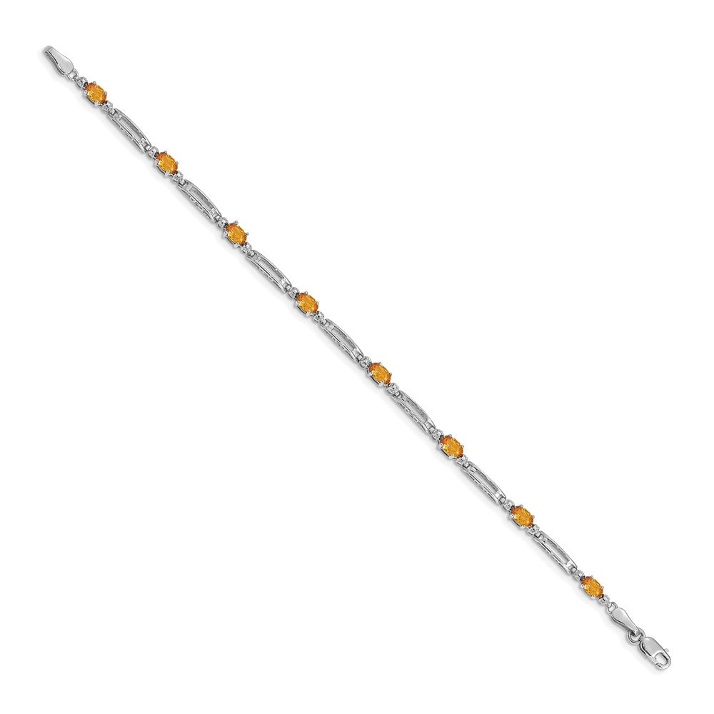 14k White Gold Complete Diamond and Oval Citrine Fancy Link Bracelet