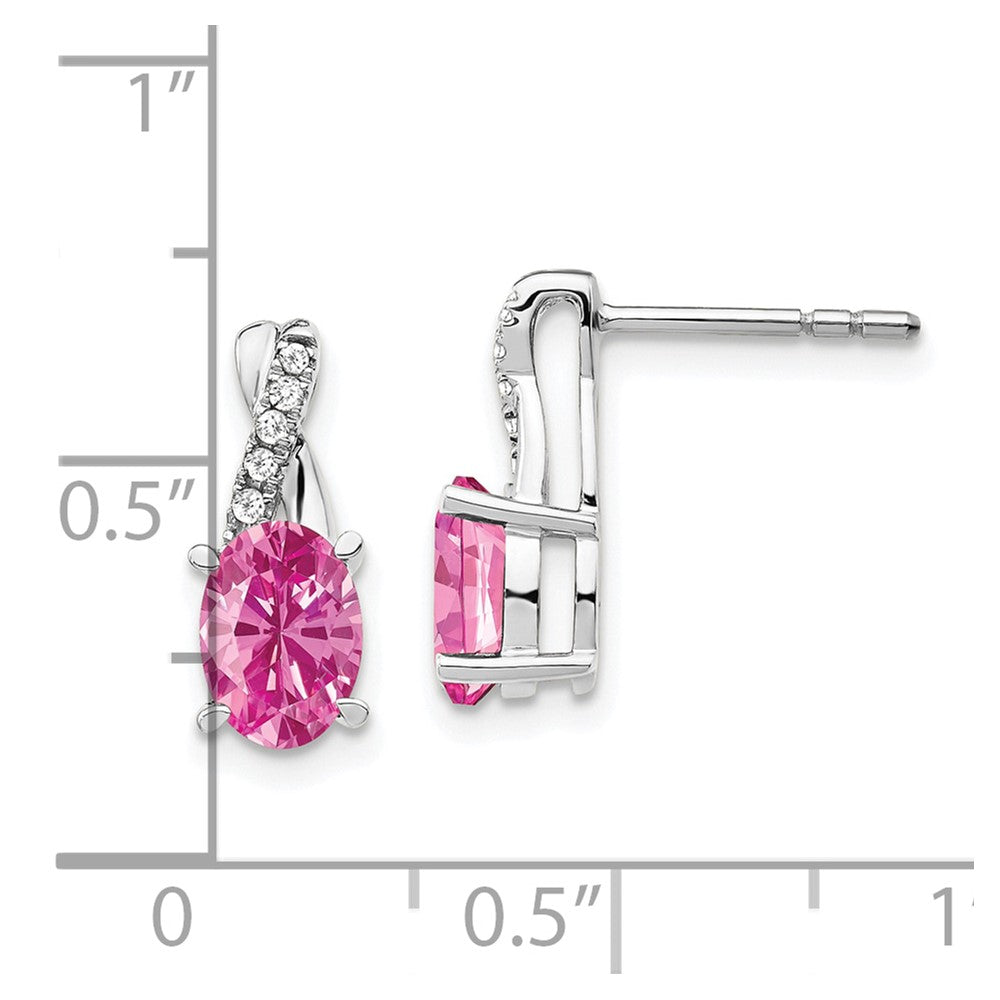 14K White Gold Created Pink Sapphire and Diamond Earrings