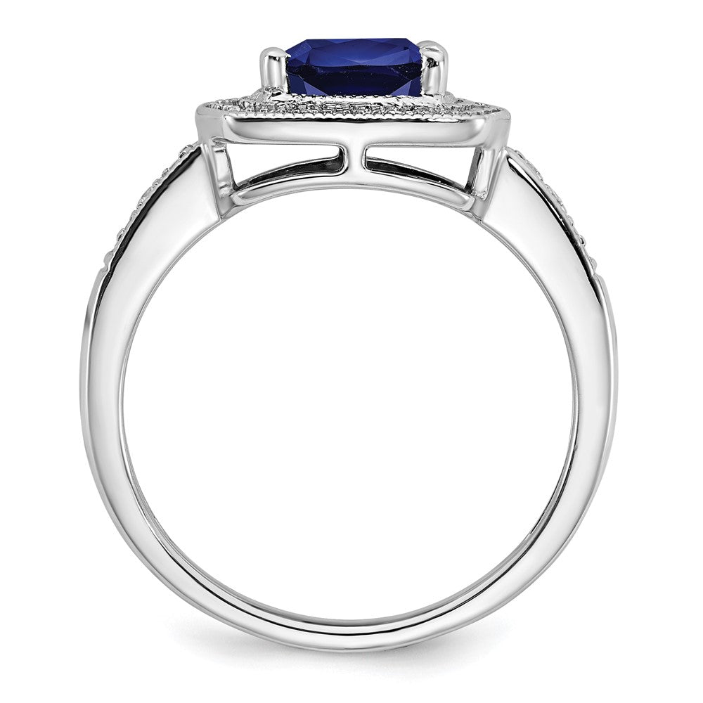 14k White Gold Cushion Created Sapphire and Diamond Halo Ring