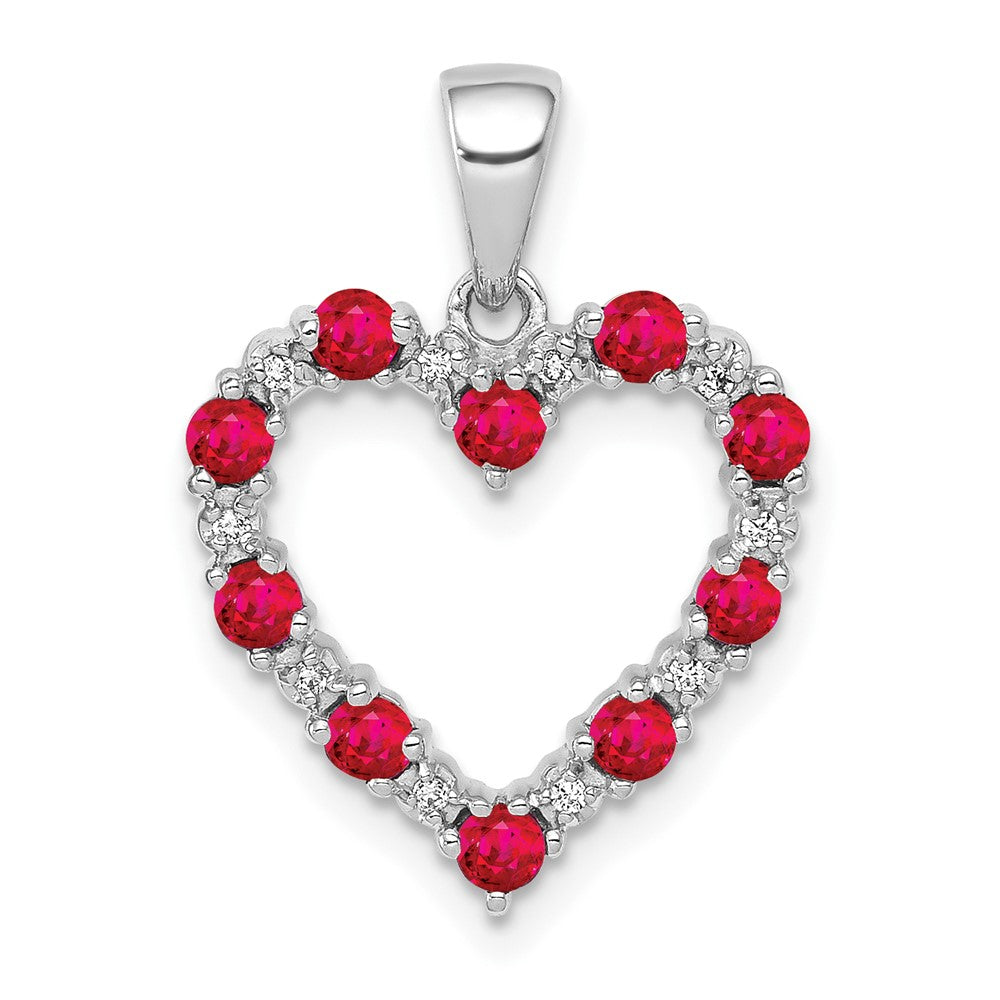 14k White Gold Diamond and .35 Ruby Heart Pendant
