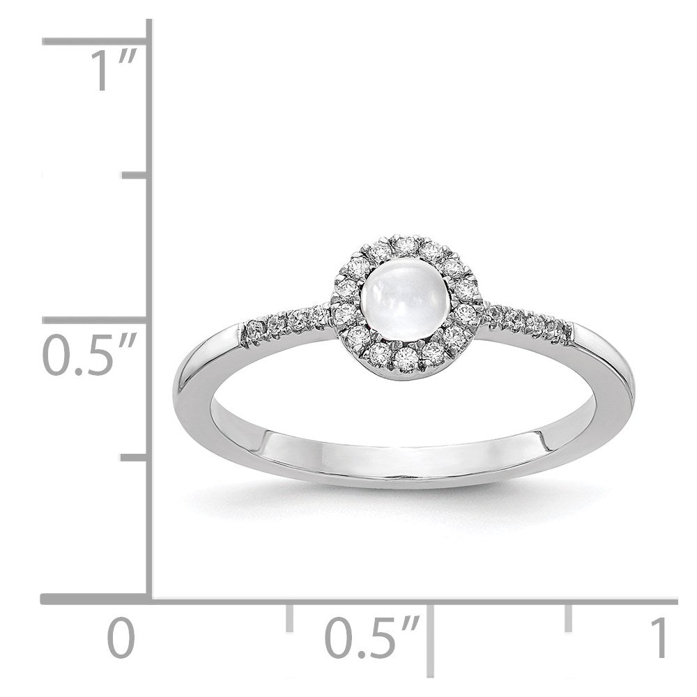 14k White Gold Diamond and Cabochon White Topaz Ring