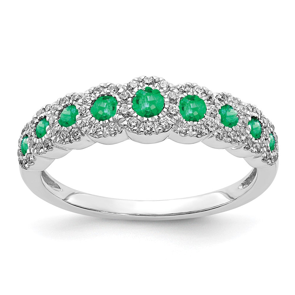14k White Gold Diamond and Emerald Polished Ring