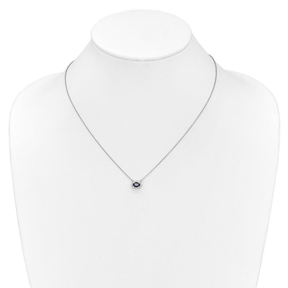 14k White Gold Diamond and Oval Sapphire Fancy Necklace