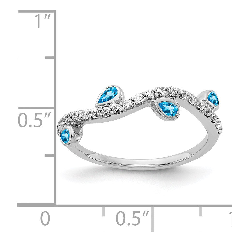 14k White Gold Diamond and Pear Blue Topaz Curved Ring