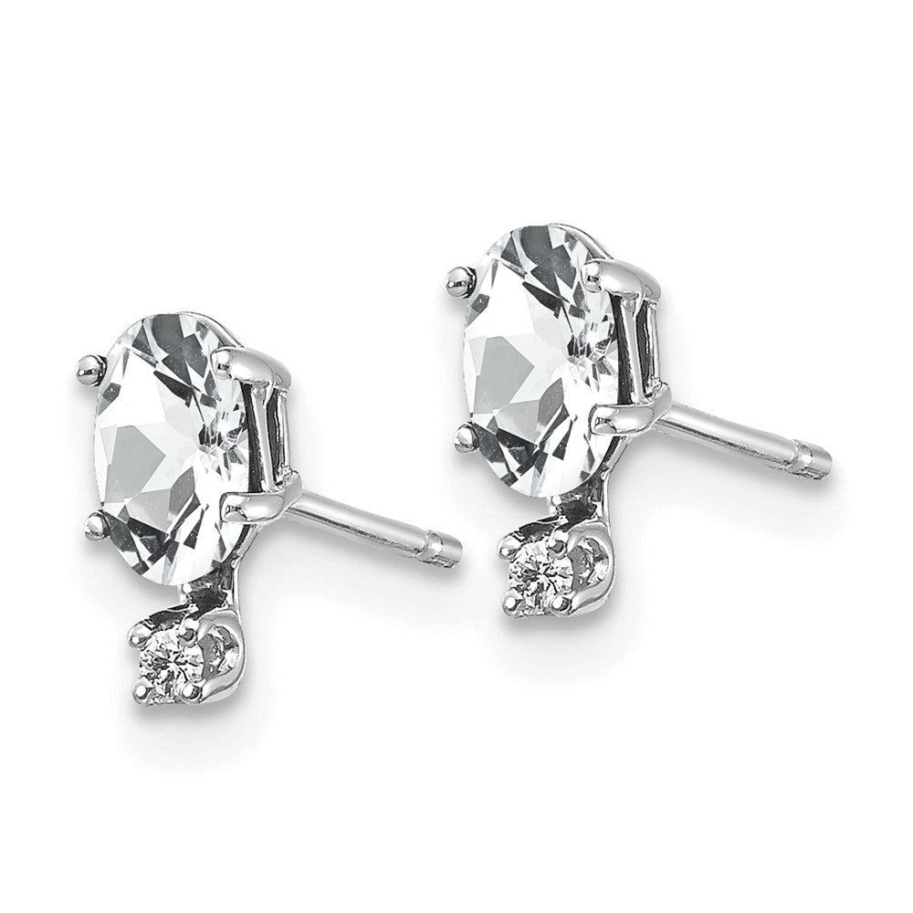 14K White Gold Diamond and White Topaz Birthstone Earrings