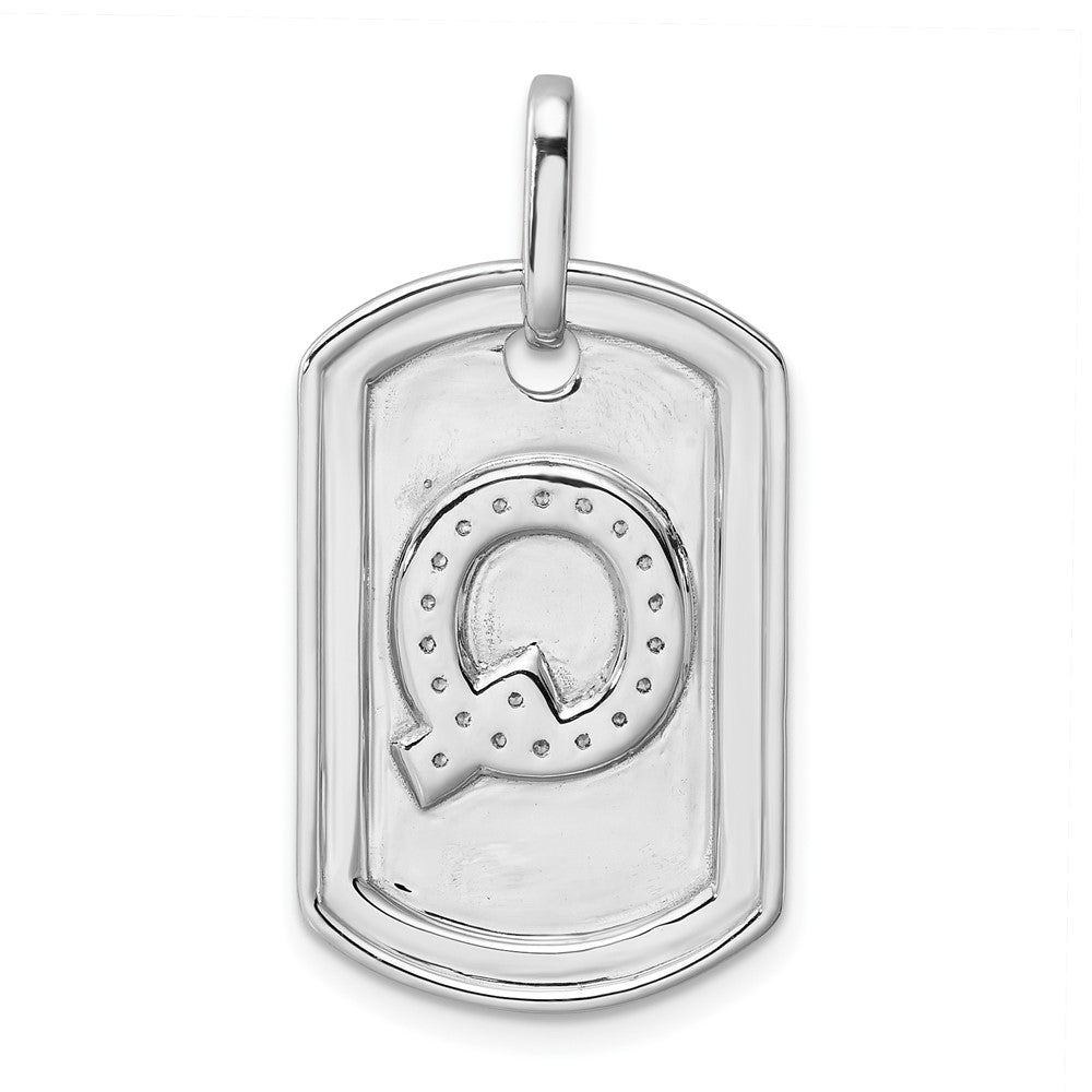 14K White Gold Diamond Initial Q Dog Tag Charm