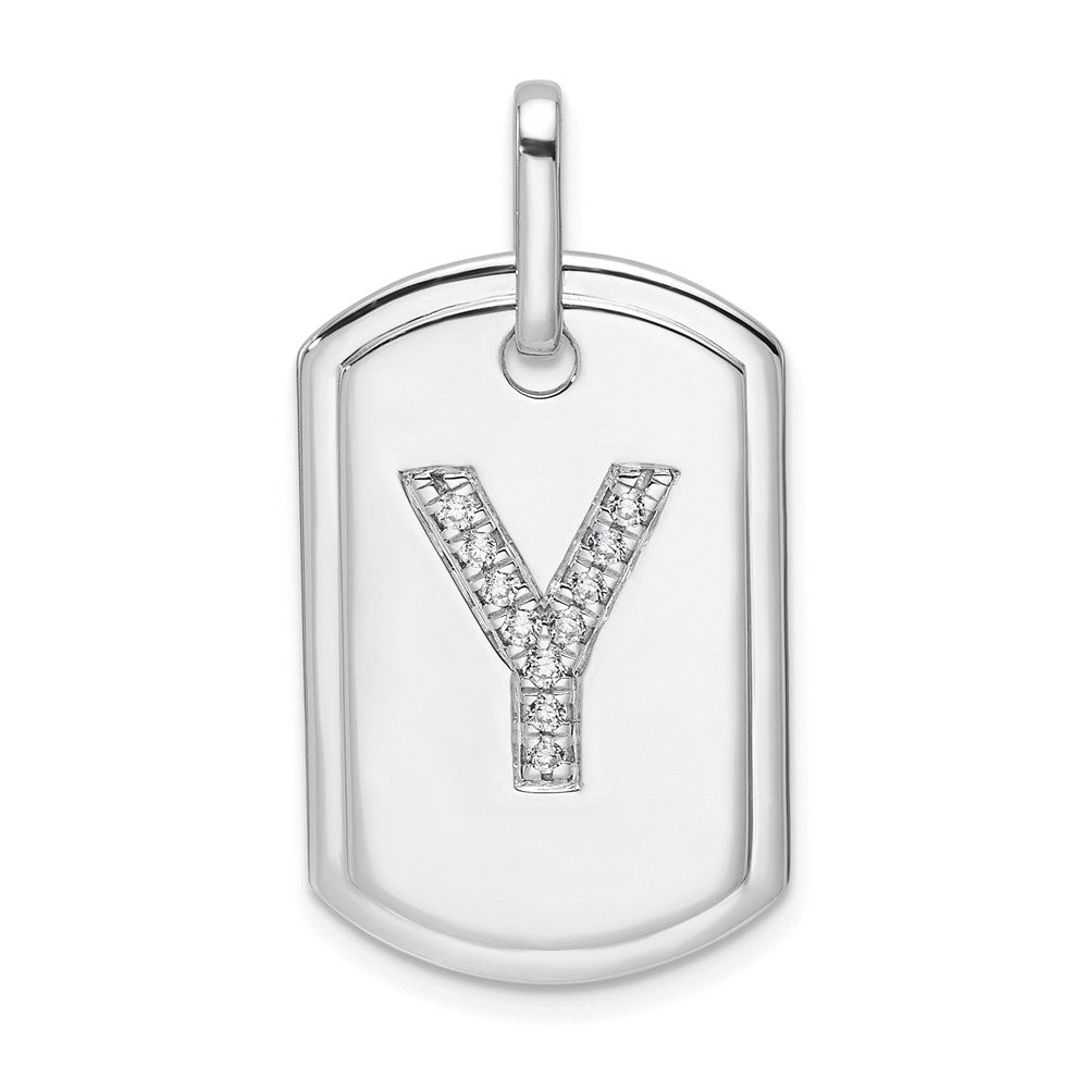 14K White Gold Diamond Initial Y Dog Tag Charm