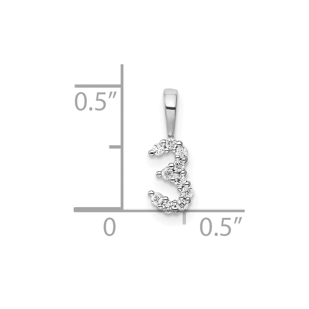14k White Gold Diamond Number 3 Pendant