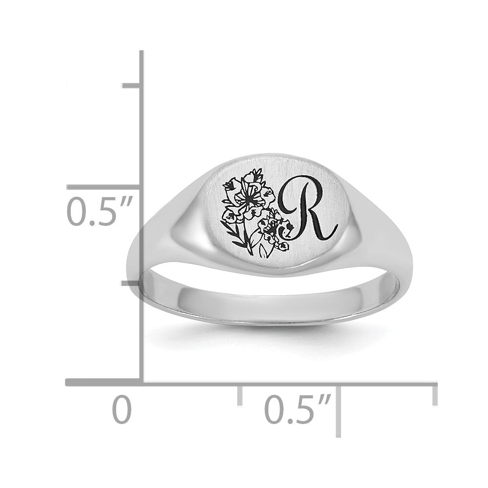 14k White Gold Epoxy Initial and Birth Flower Signet Ring