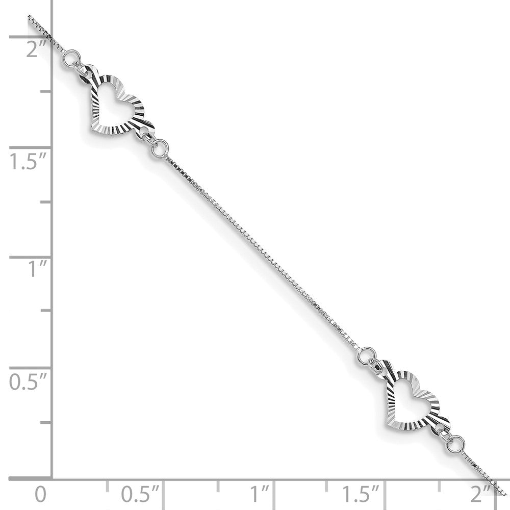 14K White Gold Fancy Textured Open Heart 3-Station 7. Bracelet