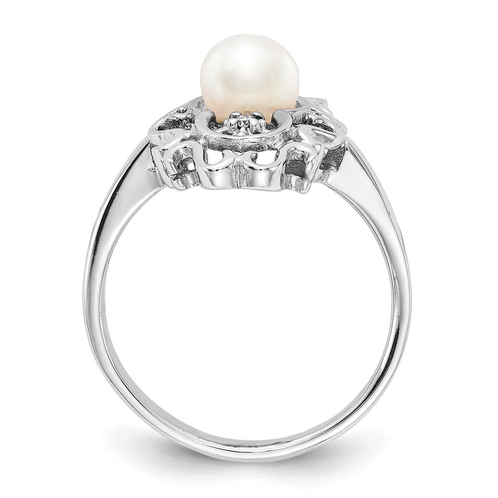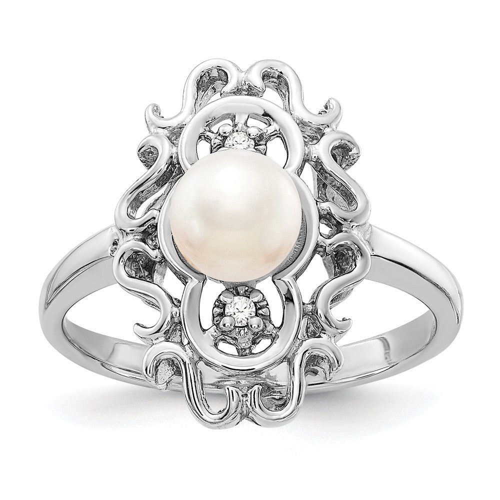 14k White Gold FW Cultured Pearl & Diamond Ring