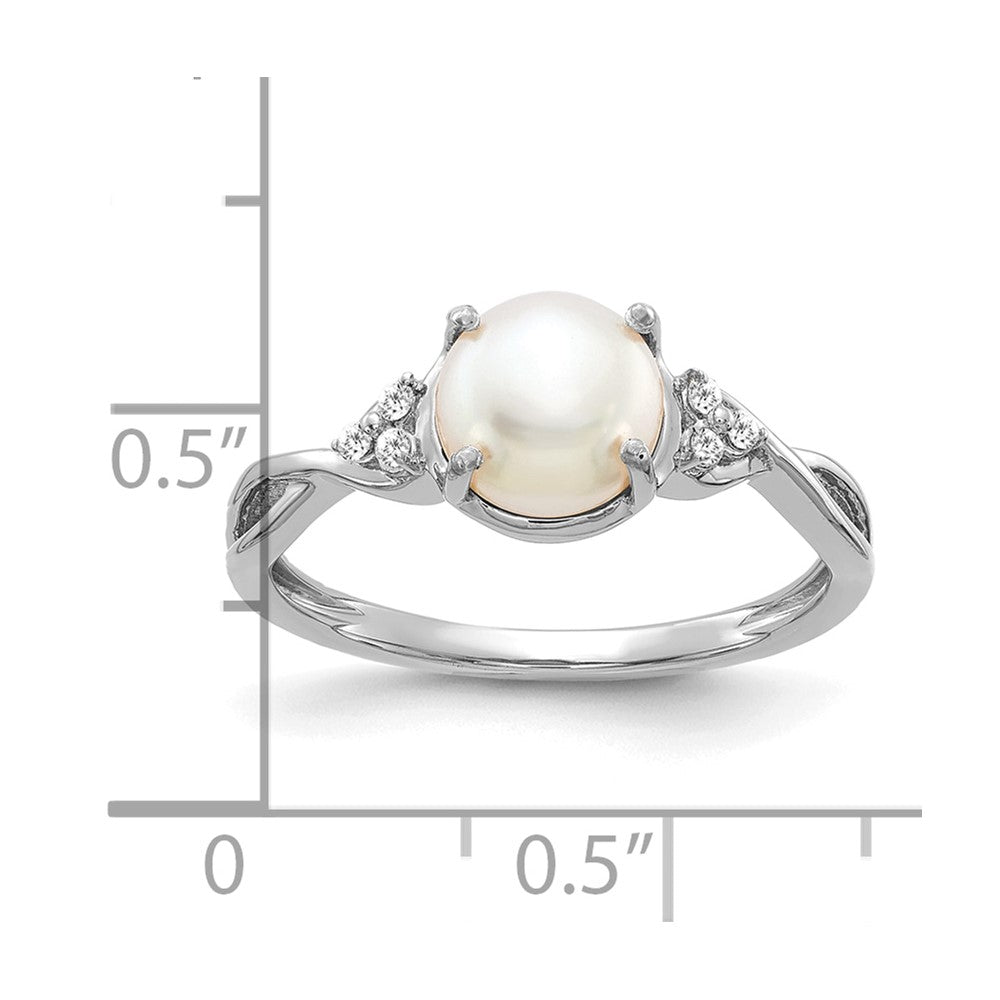 14K White Gold FWC Pearl and Diamond Ring