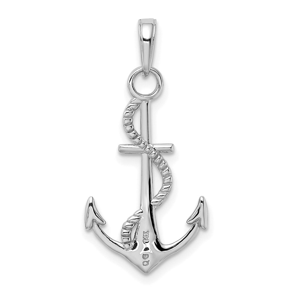 14K White Gold Gold Polished Anchor W/Rope Pendant