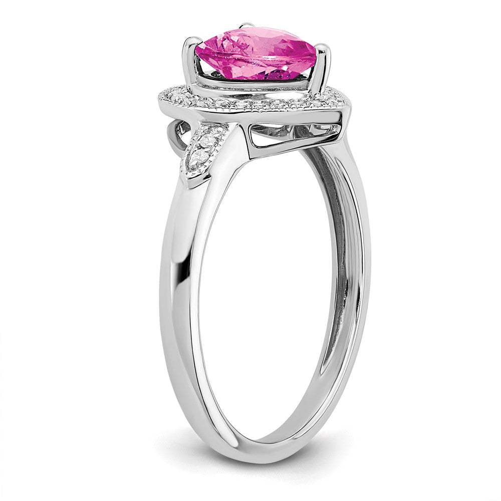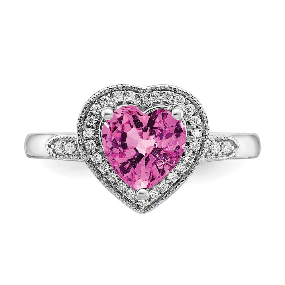14k White Gold Heart Created Pink Sapphire and Diamond Halo Ring