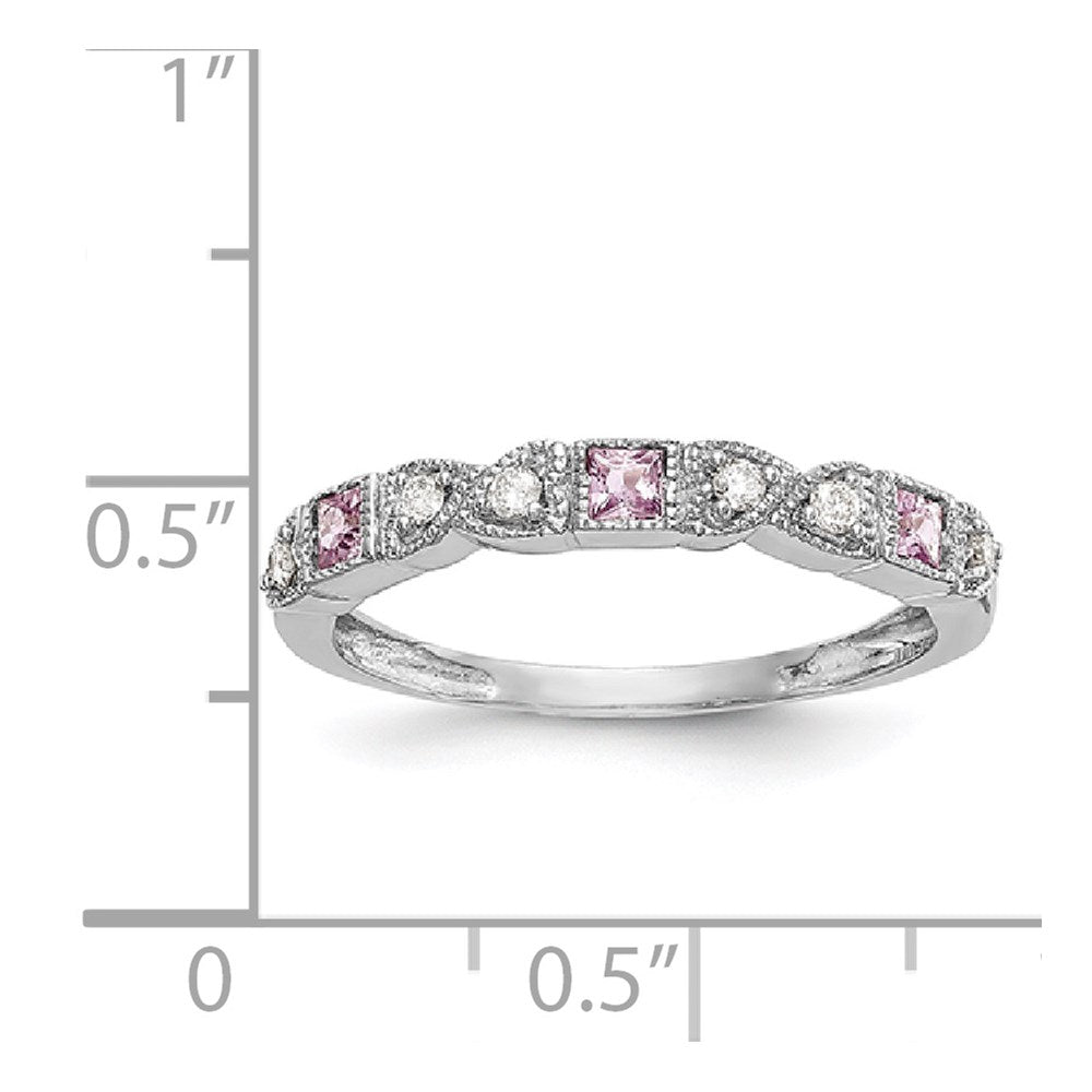 14k White Gold Heart Design 1/10 carat Diamond and Pink Sapphire Complete Band
