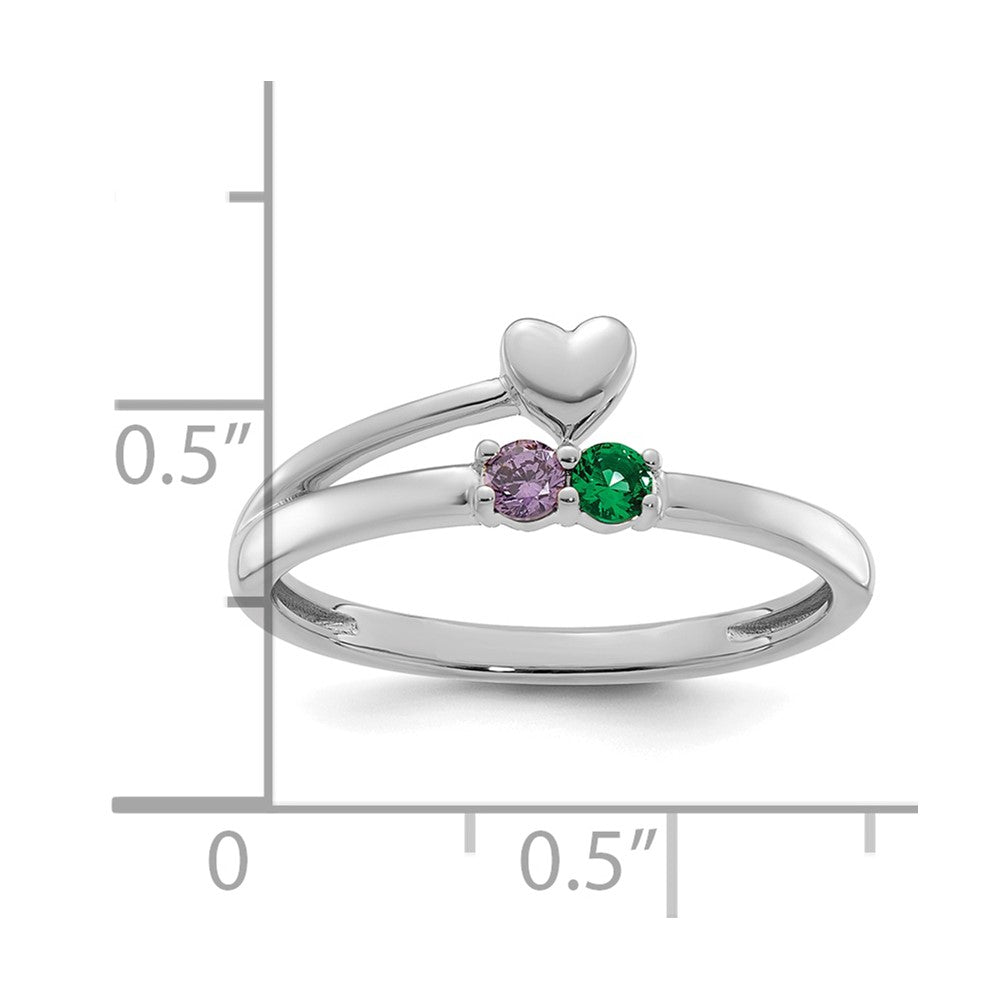 14k White Gold Heart with 2 Synthetic Birthstone Mother's Ring