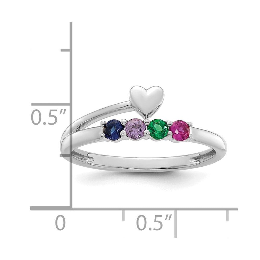 14k White Gold Heart with 4 Birthstone Mother's Ring Mounting