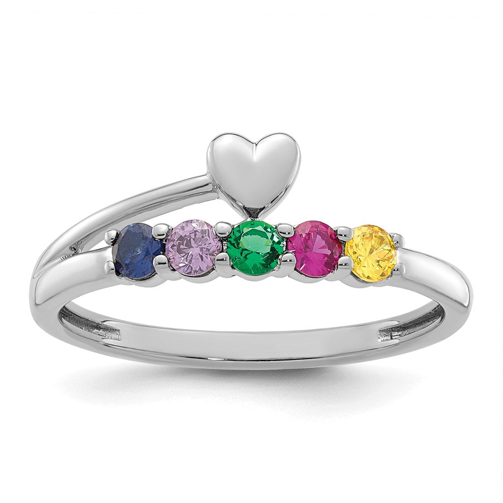 14k White Gold Heart with 5 Birthstone Mother's Ring Mounting