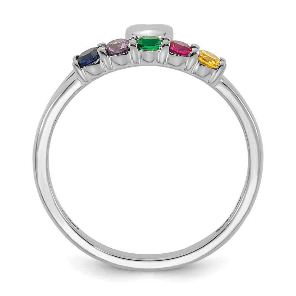 14k White Gold Heart with 5 Genuine Birthstone Mother's Ring