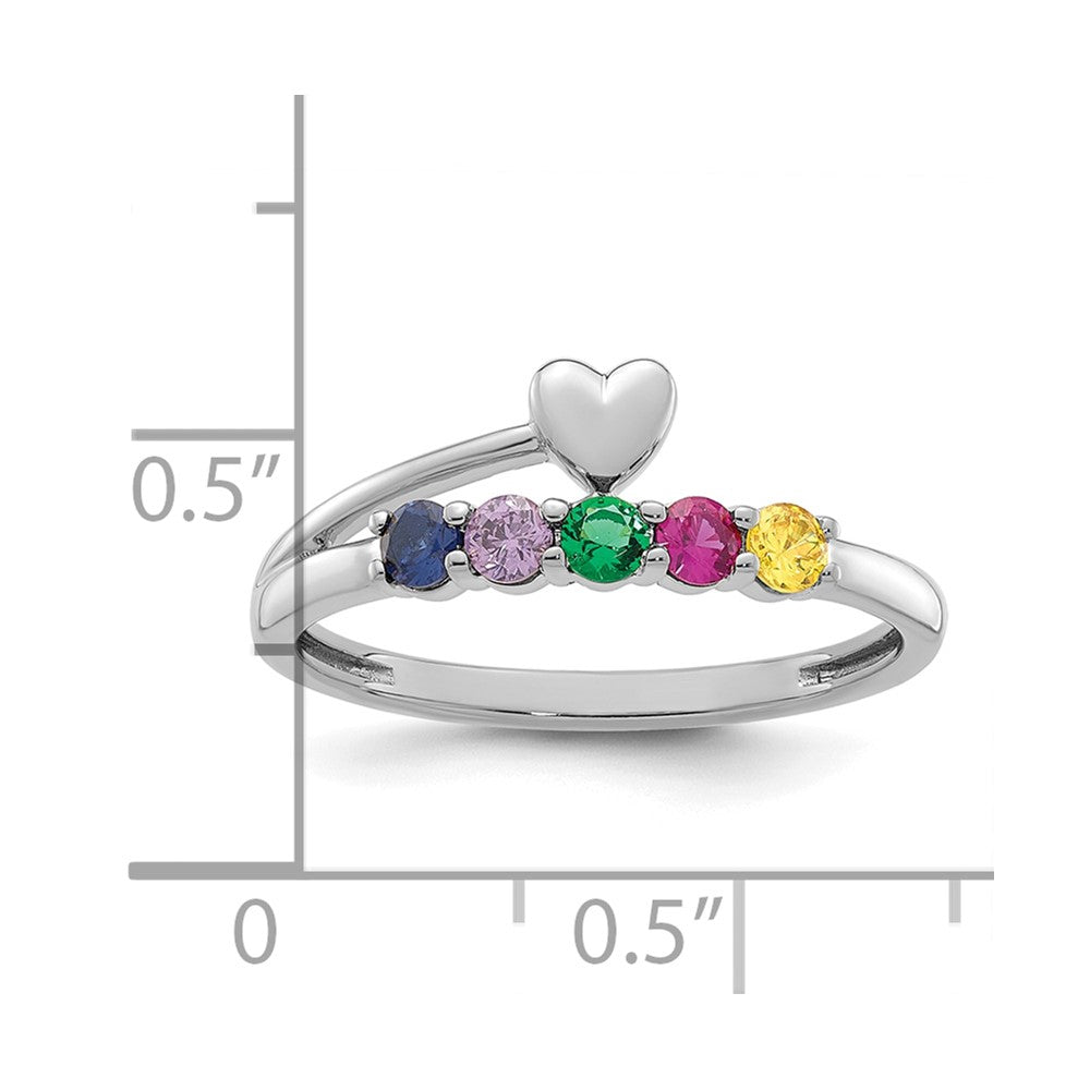 14k White Gold Heart with 5 Synthetic Birthstone Mother's Ring