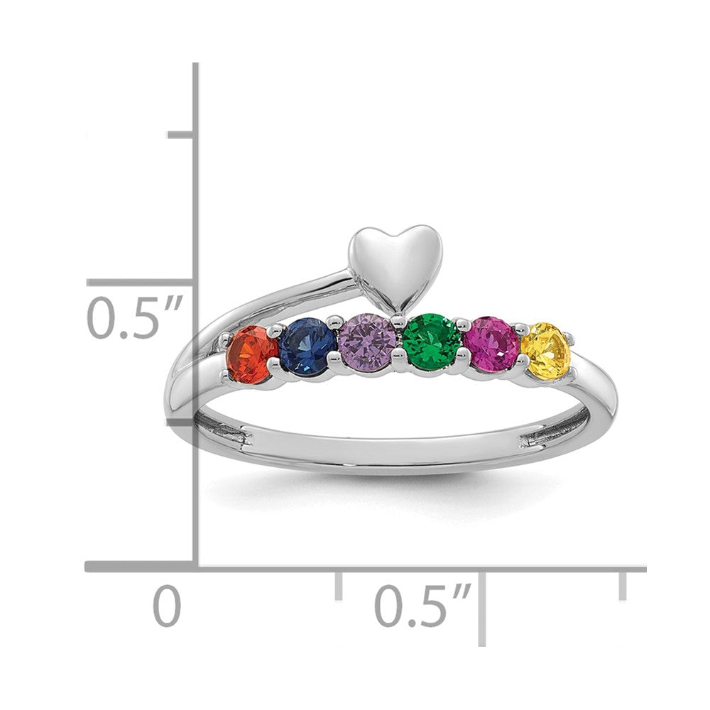 14k White Gold Heart with 6 Birthstone Mother's Ring Mounting