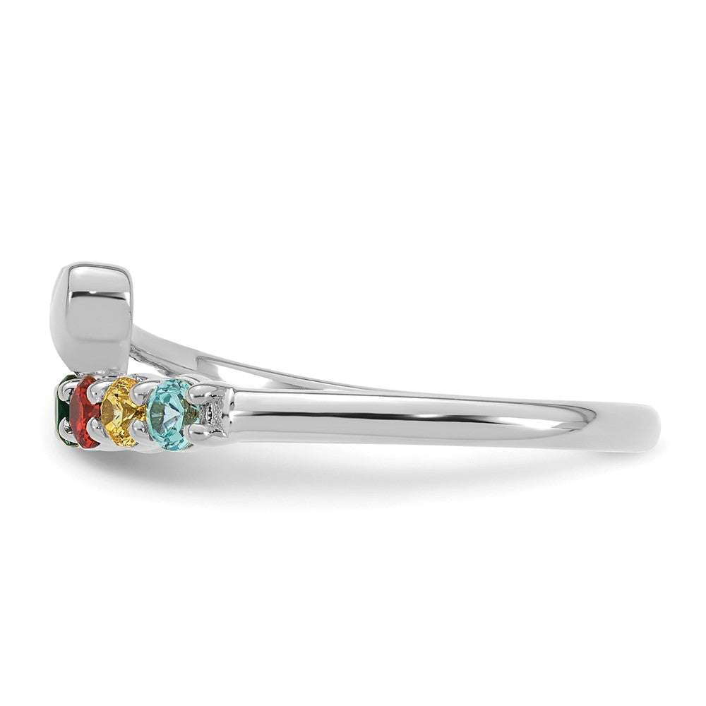 14k White Gold Heart with 7 Genuine Birthstone Mother's Ring