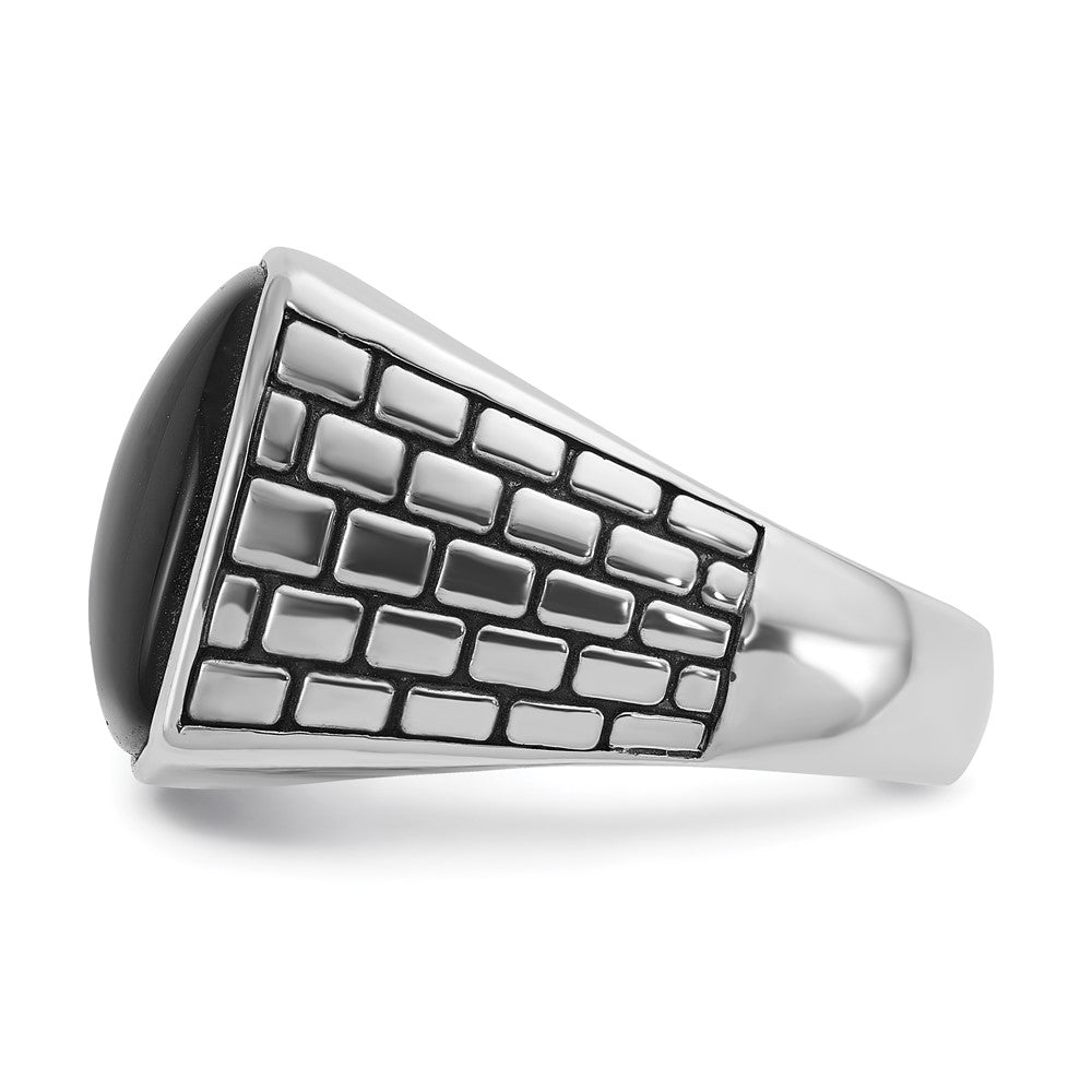 14k White Gold IBGoodman Men's Antiqued Onyx Complete Ring