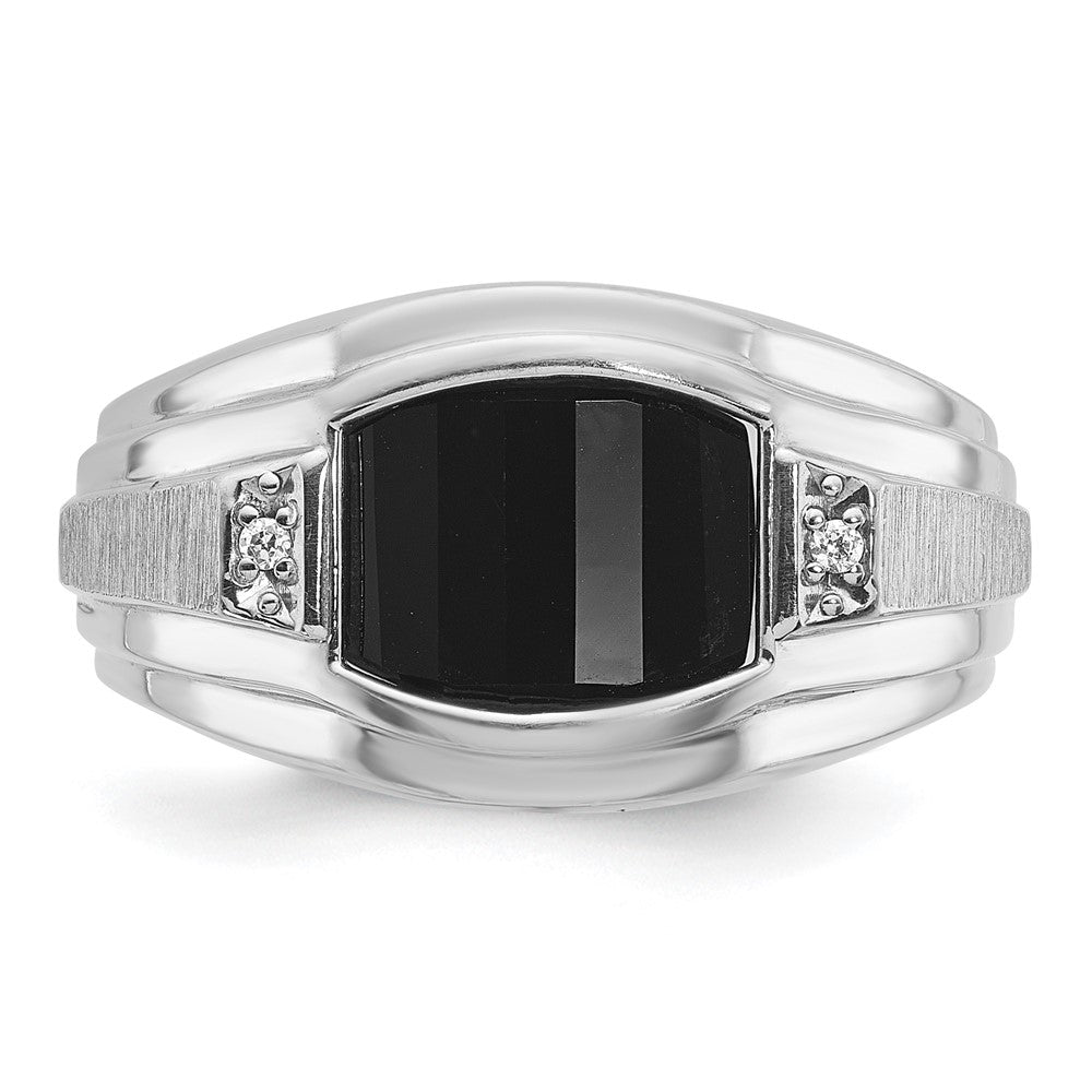 14k White Gold IBGoodman Men's Satin Onyx and Diamond Complete Ring