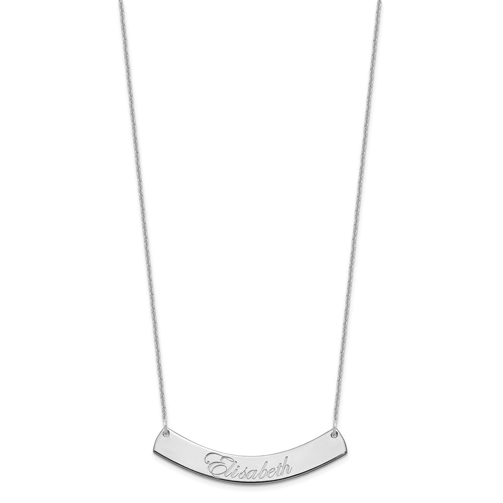 14k White Gold Medium EDWARDIAN SCRRIPT Curved Bar Necklace