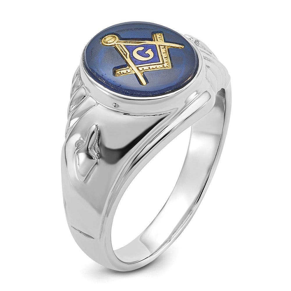 14k White Gold Men's Polished and Textured with Imitation Blue Spinel Masonic Ring