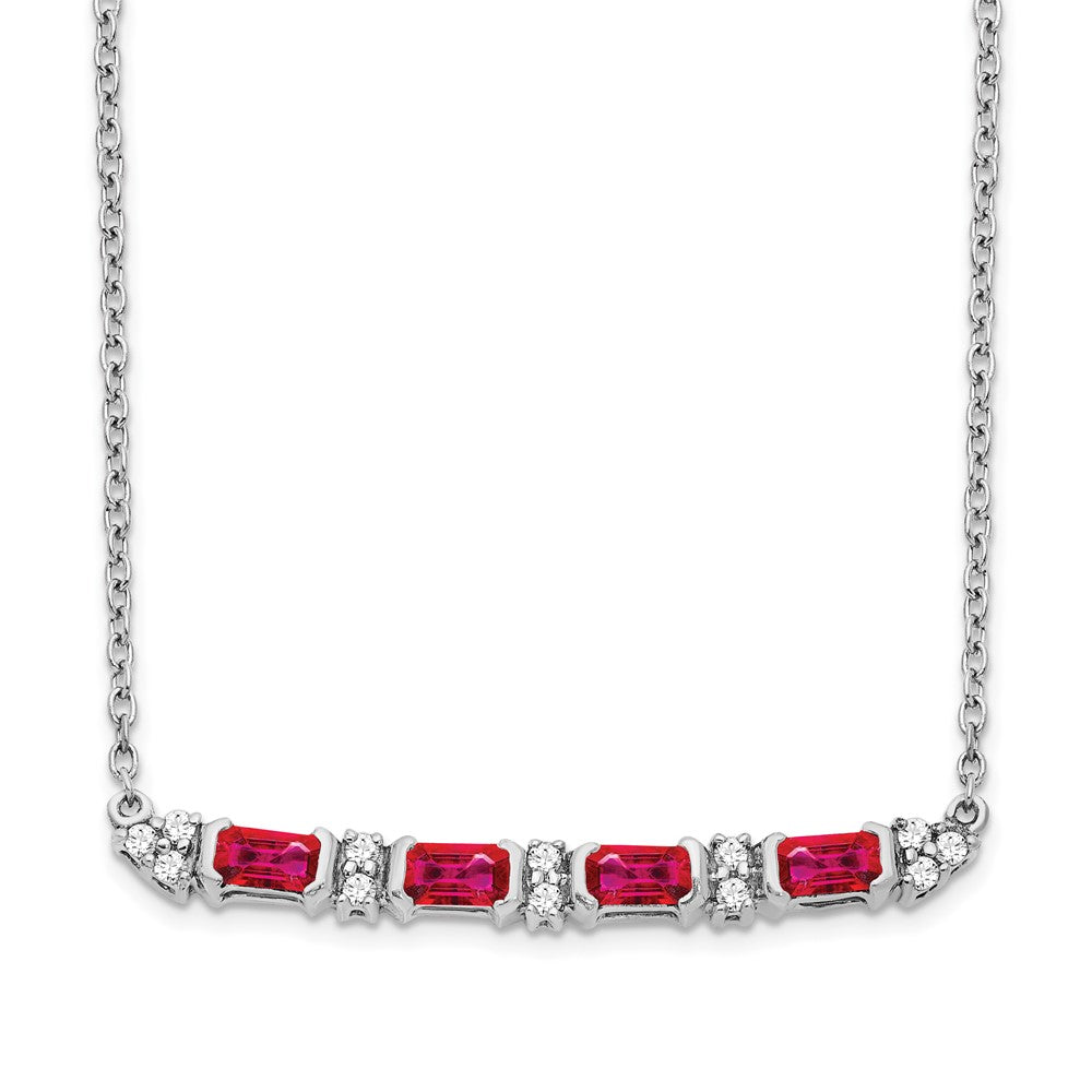 14k White Gold Octagon Ruby and Diamond Bar Necklace