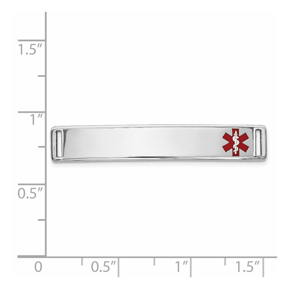 14K White Gold Off-Center Red Epoxy Enameled Medical ID Plate # 817