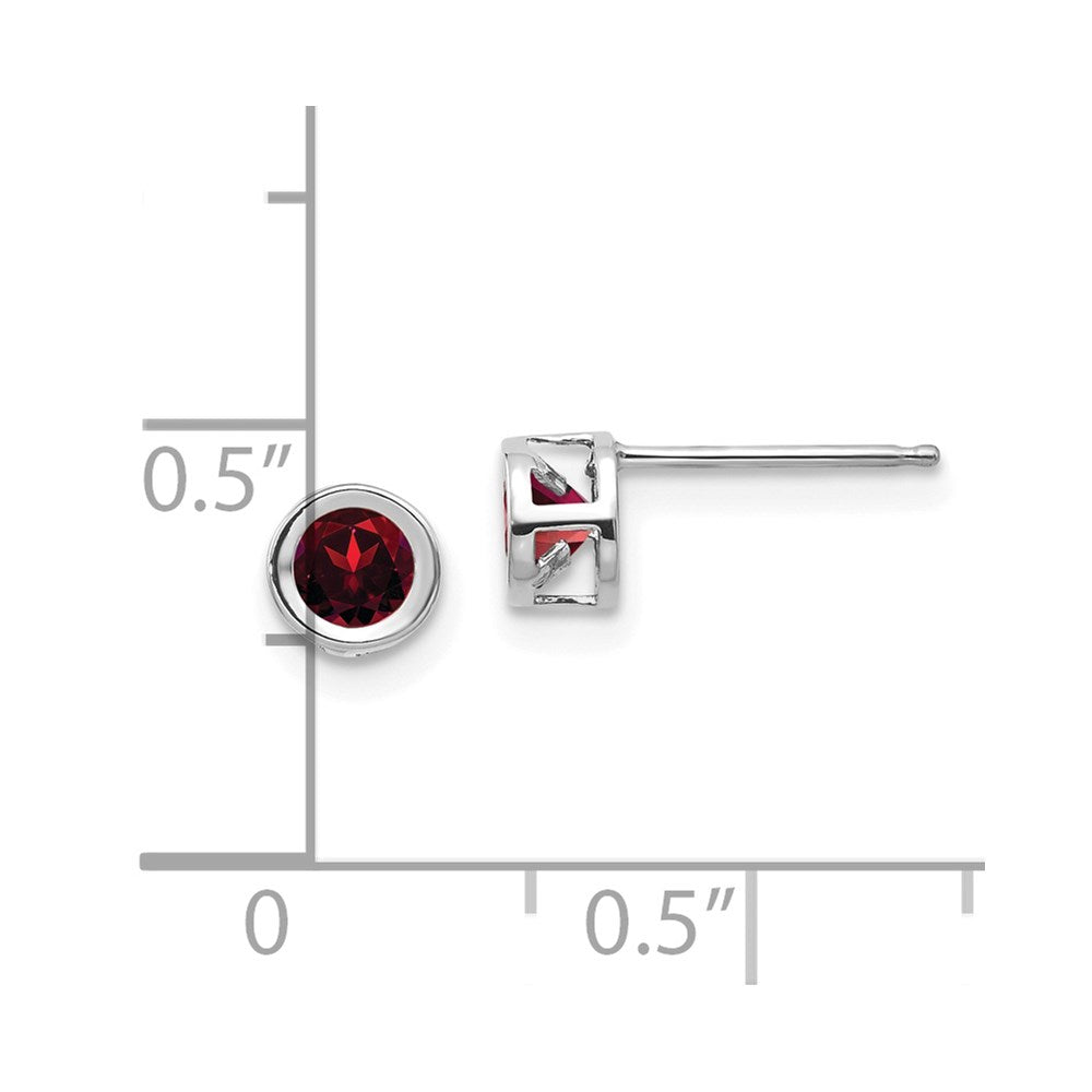 14k White Gold Oval Bezel January/Garnet Post Earrings