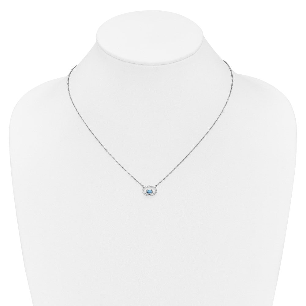 14k White Gold Oval Blue Topaz and Diamond 18in. Necklace