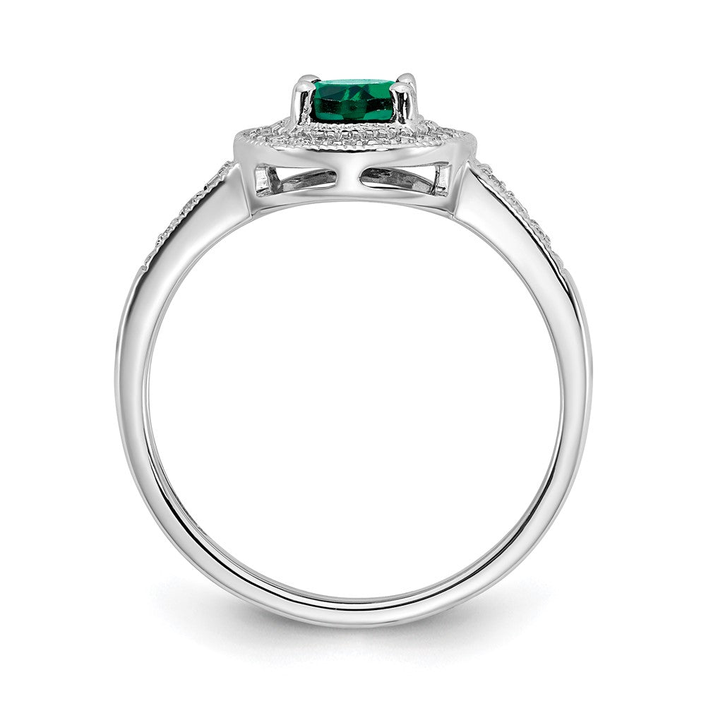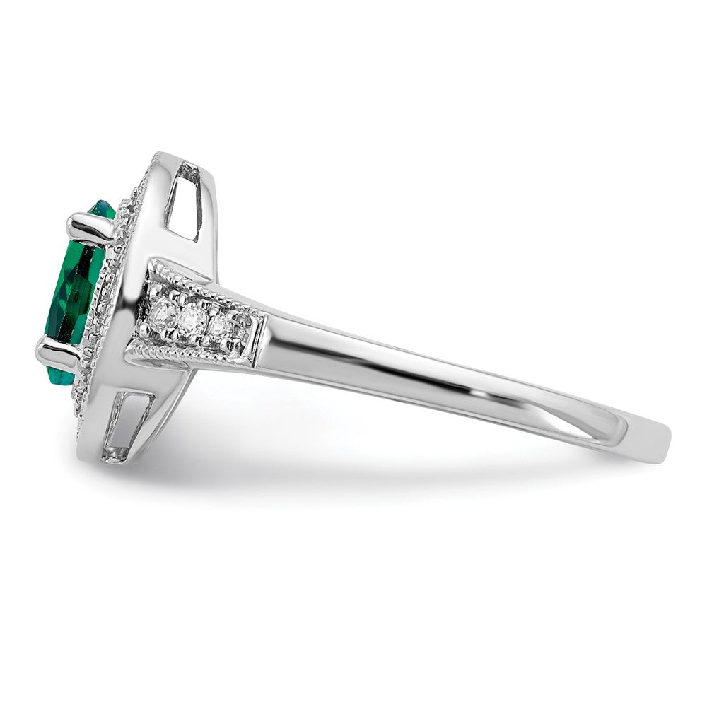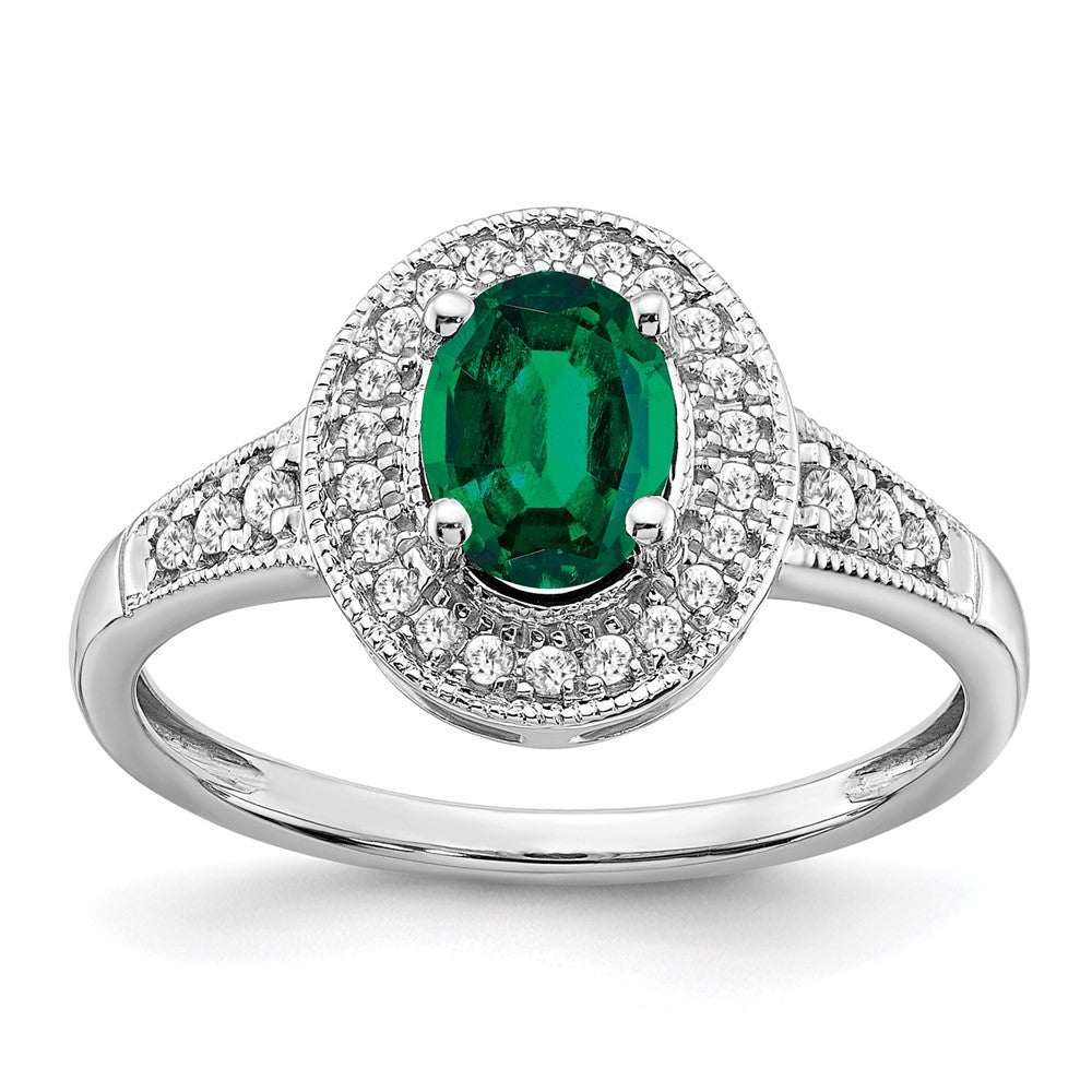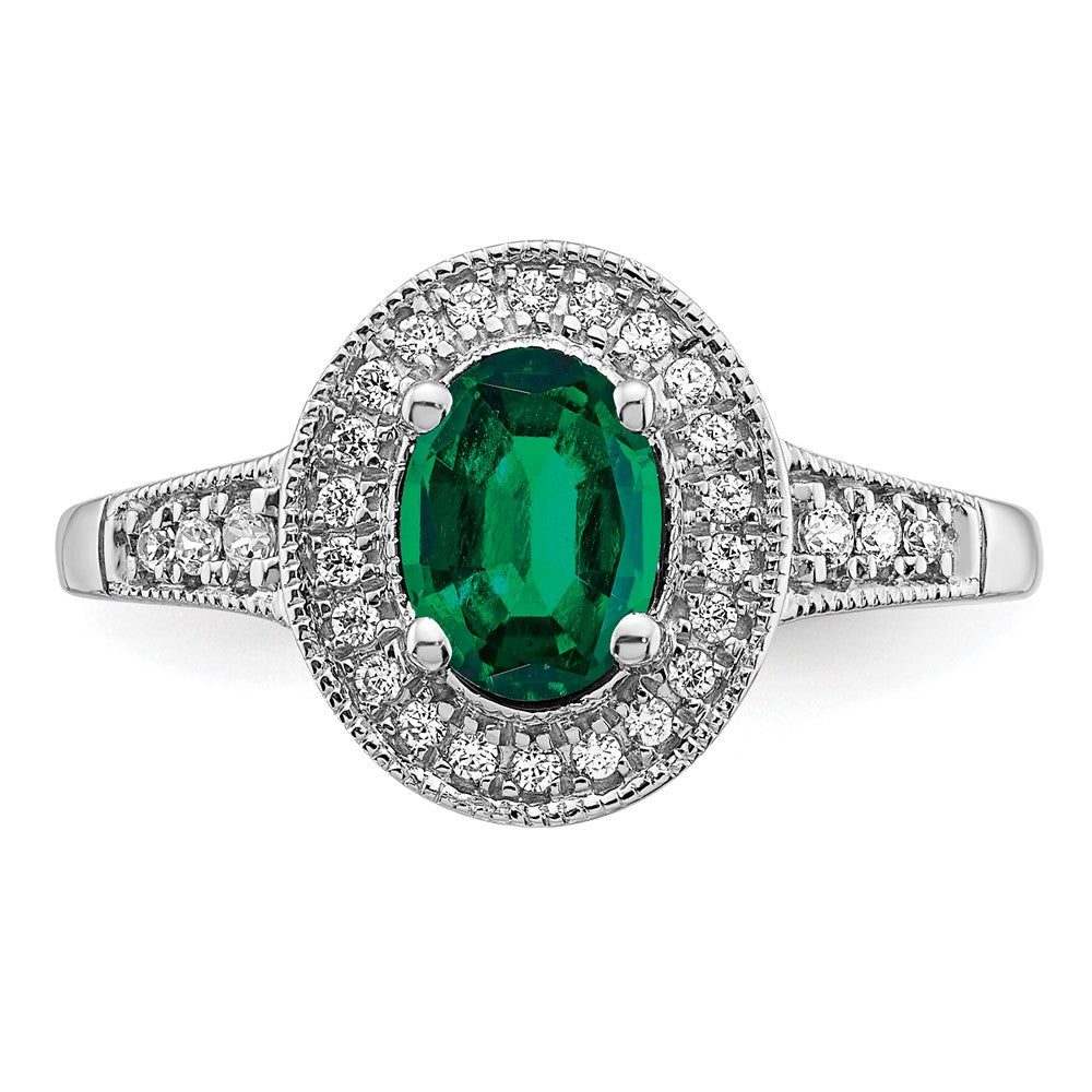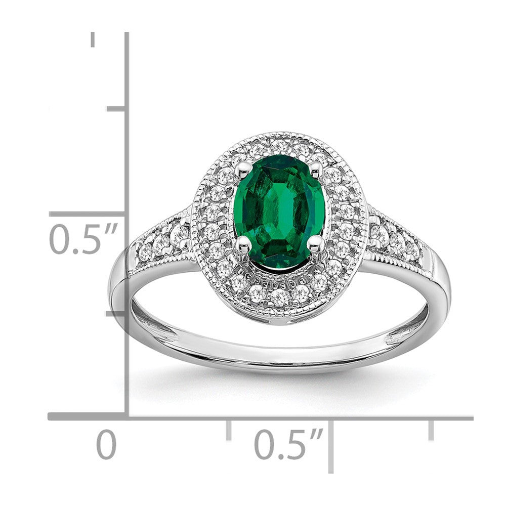 14k White Gold Oval Created Emerald and Diamond Halo Ring