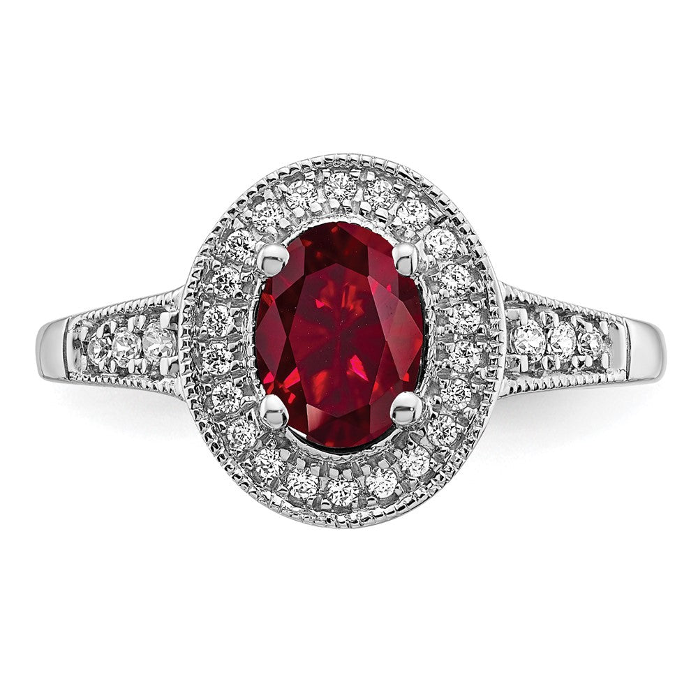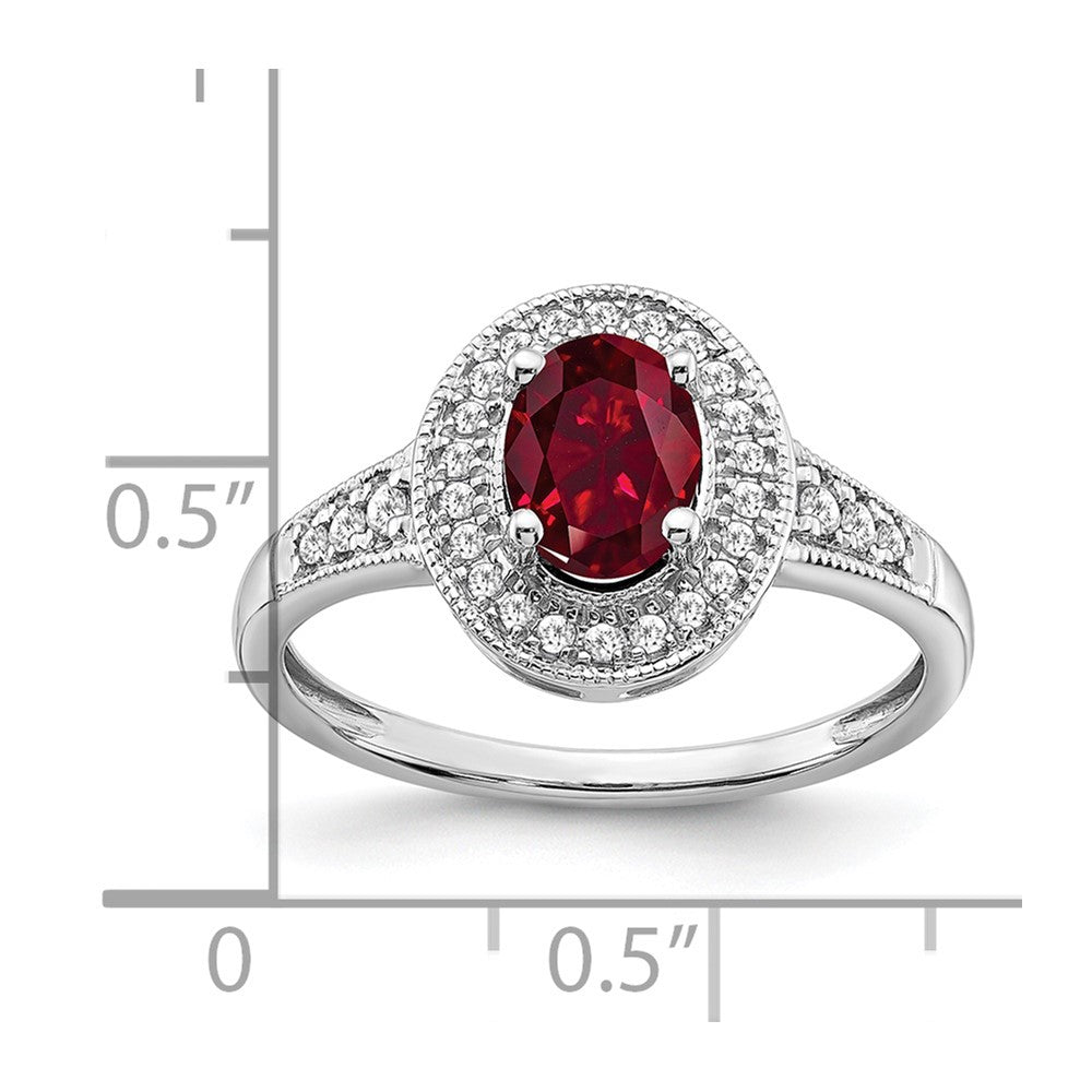 14k White Gold Oval Created Ruby and Diamond Halo Ring