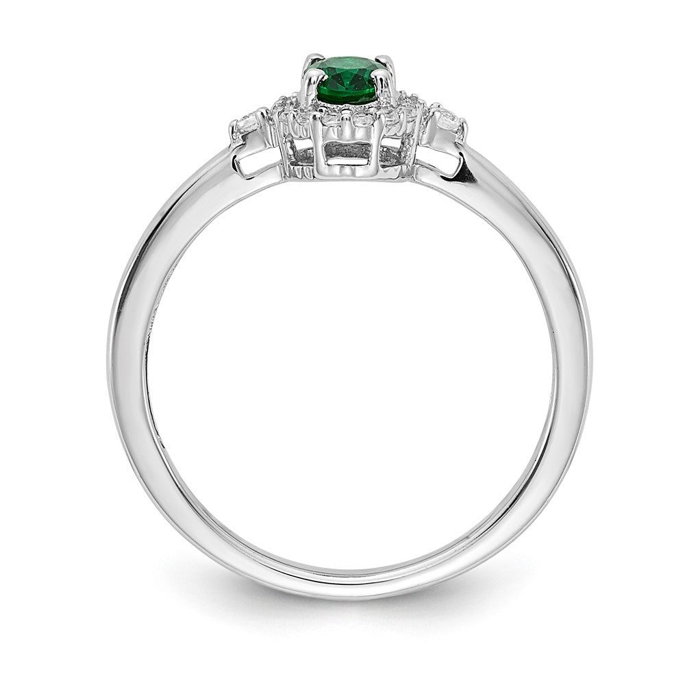 14k White Gold Oval Emerald and Diamond Halo Ring