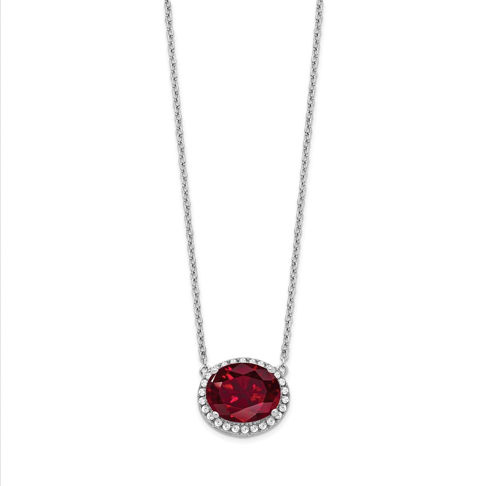 14k White Gold Oval Lab Created Ruby and Diamond Halo East-West Necklace