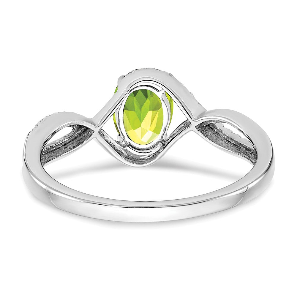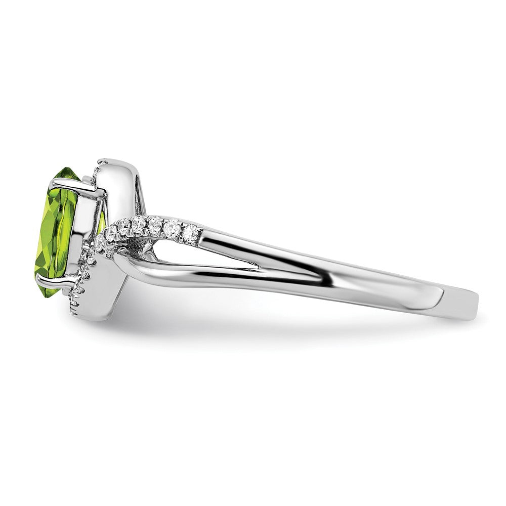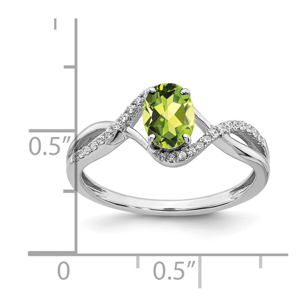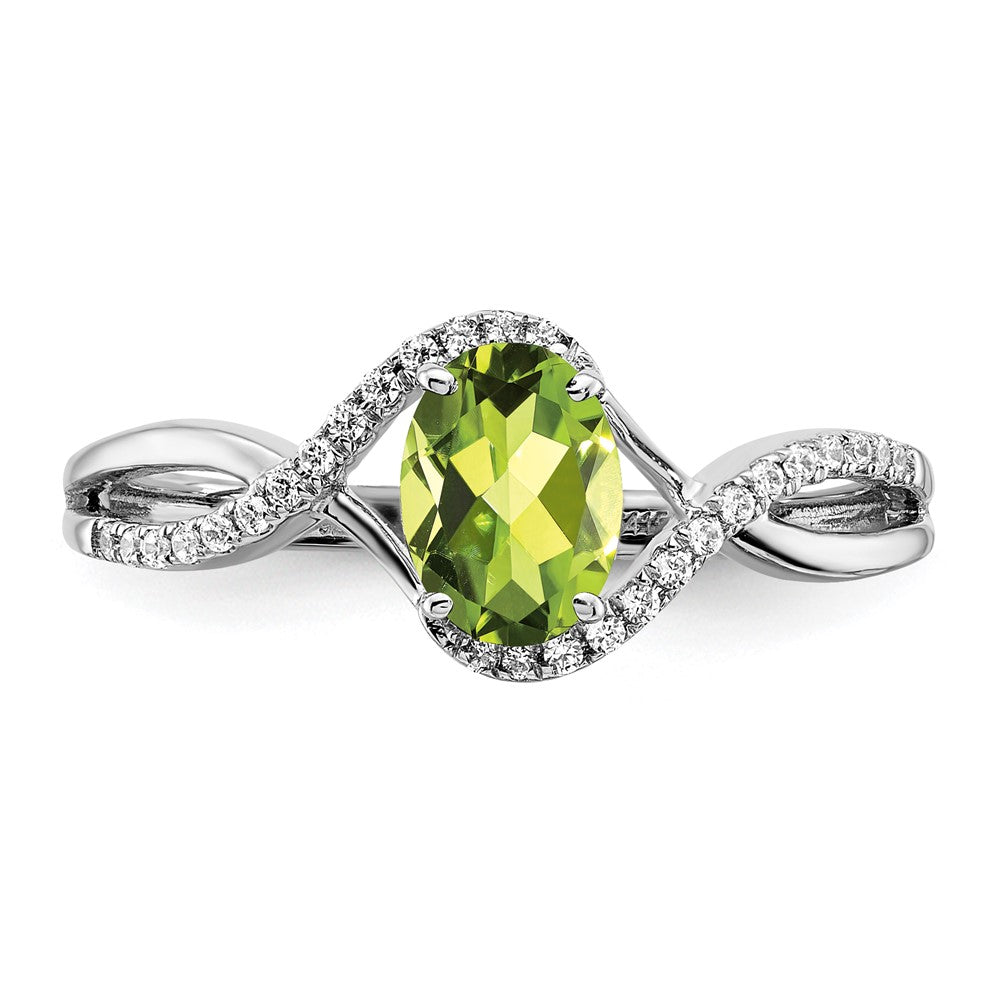 14k White Gold Oval Peridot and Diamond Twist Ring