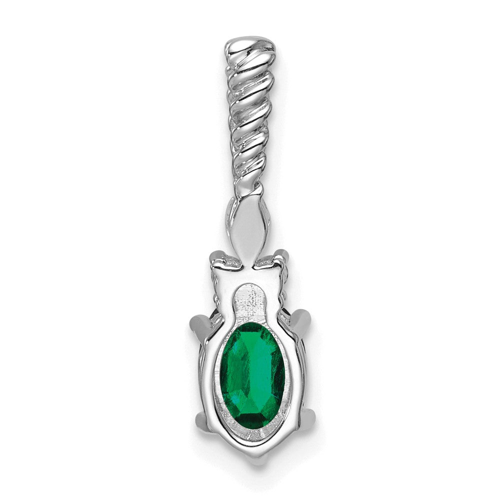 14K White Gold Polish Diamond and Lab Created Emerald Twisted Chain Slide