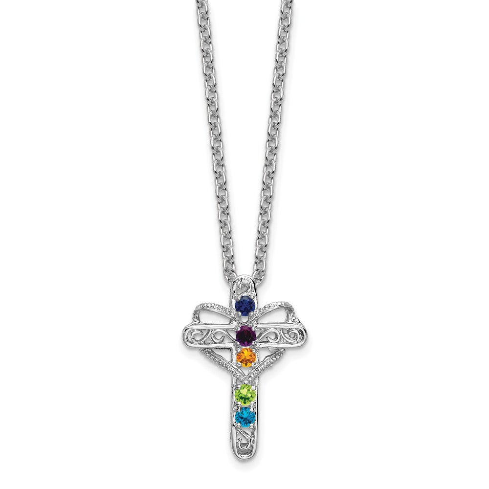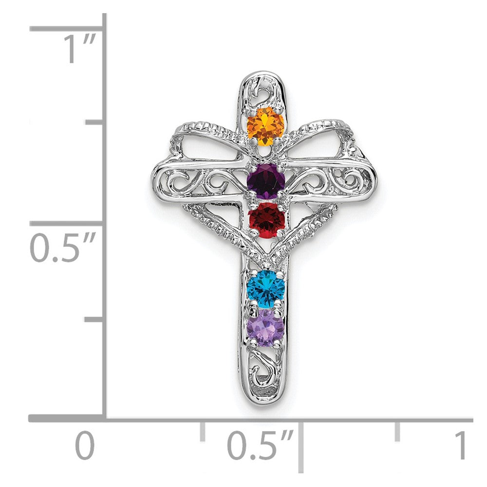 14k White Gold Polish Filigree 5-Stone Mothers Cross Pendant Mounting