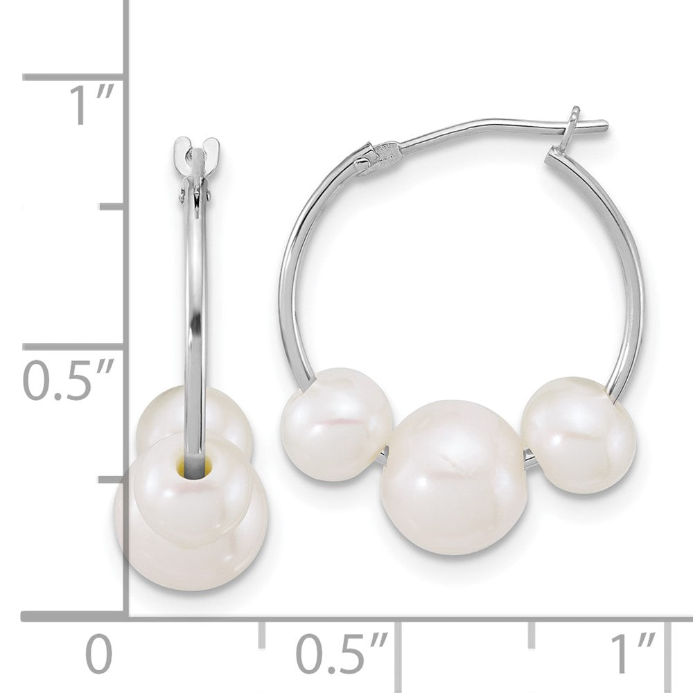 14K White Gold Polished 6- Semi-Round White Freshwater Cultured 3-Pearl Hoop Earrings