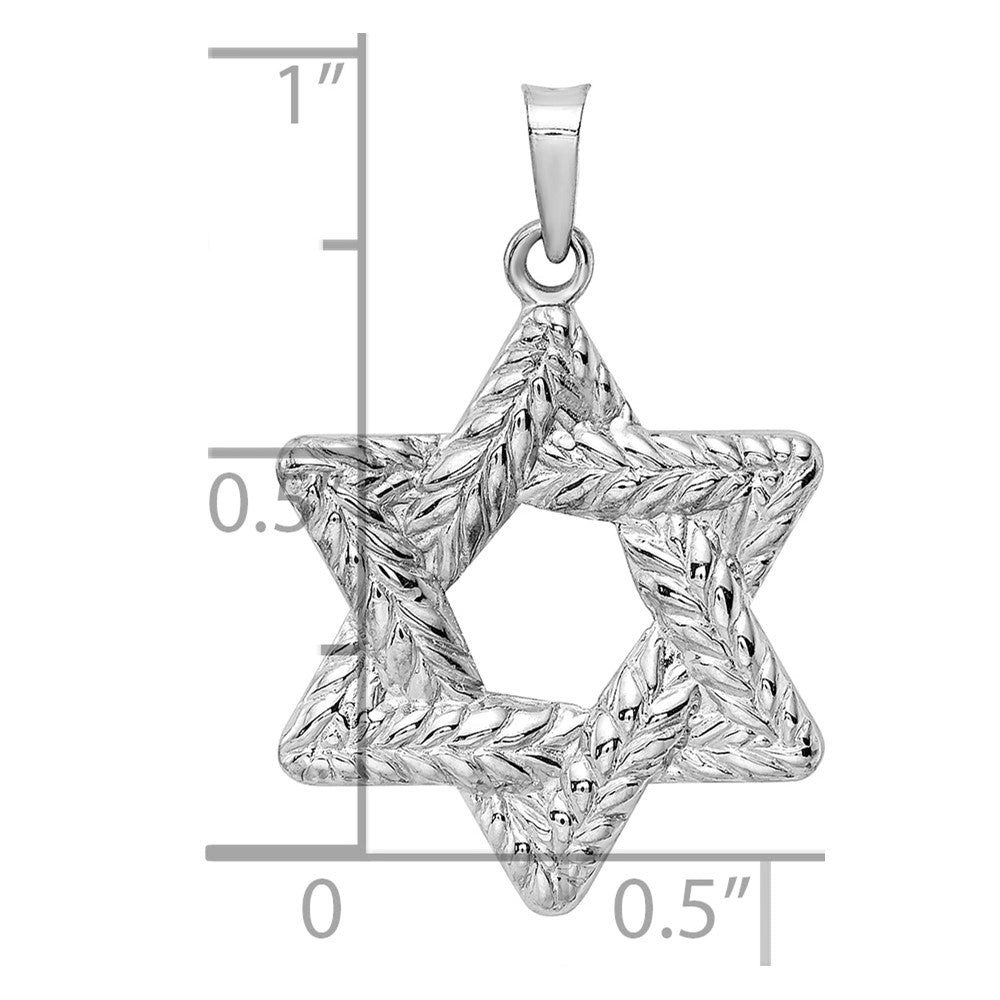 14k White Gold Polished and Textured Solid Star of David Pendant