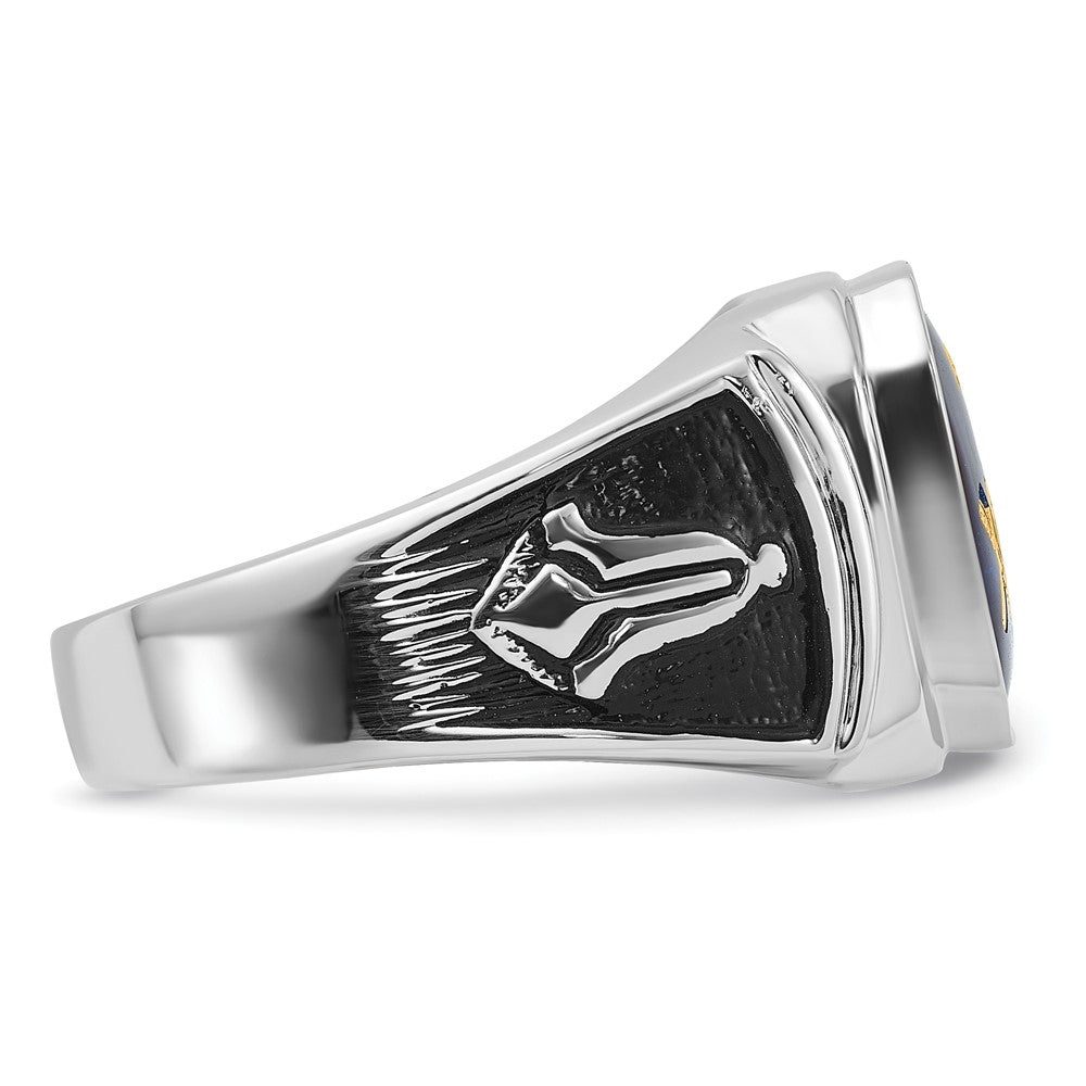 14k White Gold Polished and Textured with Black Enamel and Imitation Blue Spinel Masonic Ring