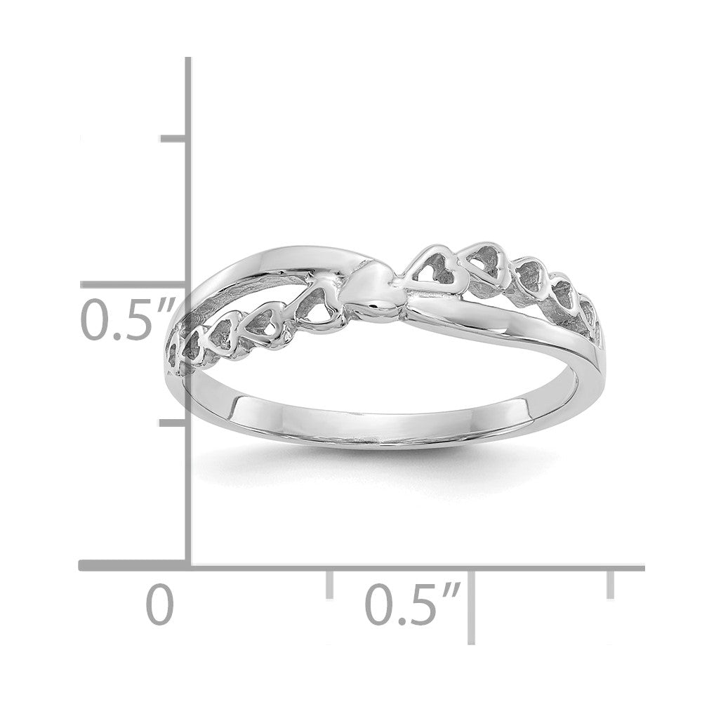 14K White Gold Polished Criss Cross Pattern Hearts Ring