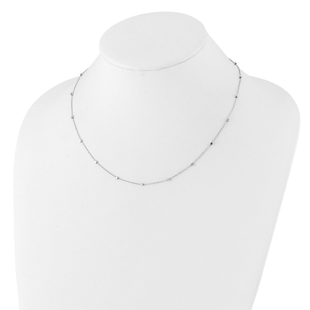 14K White Gold Polished Cube Stations Necklace Plus Extender