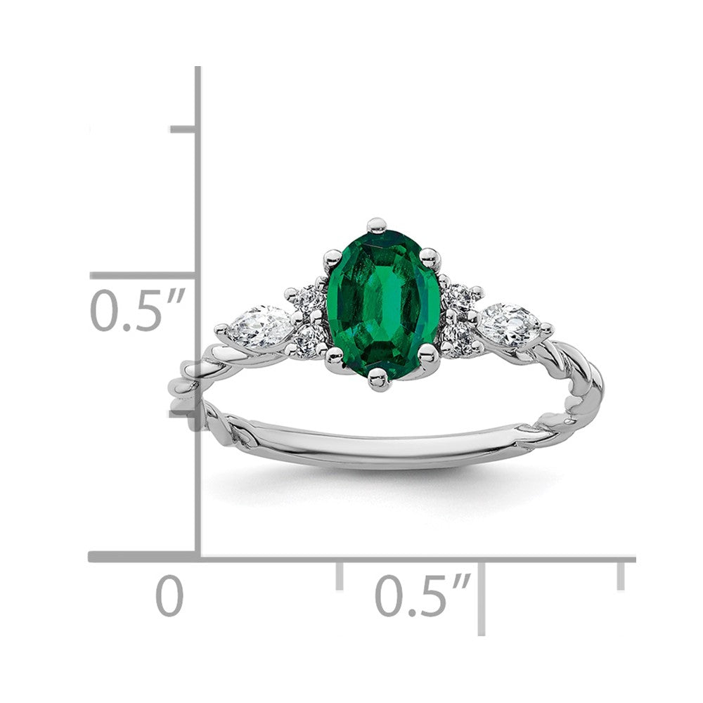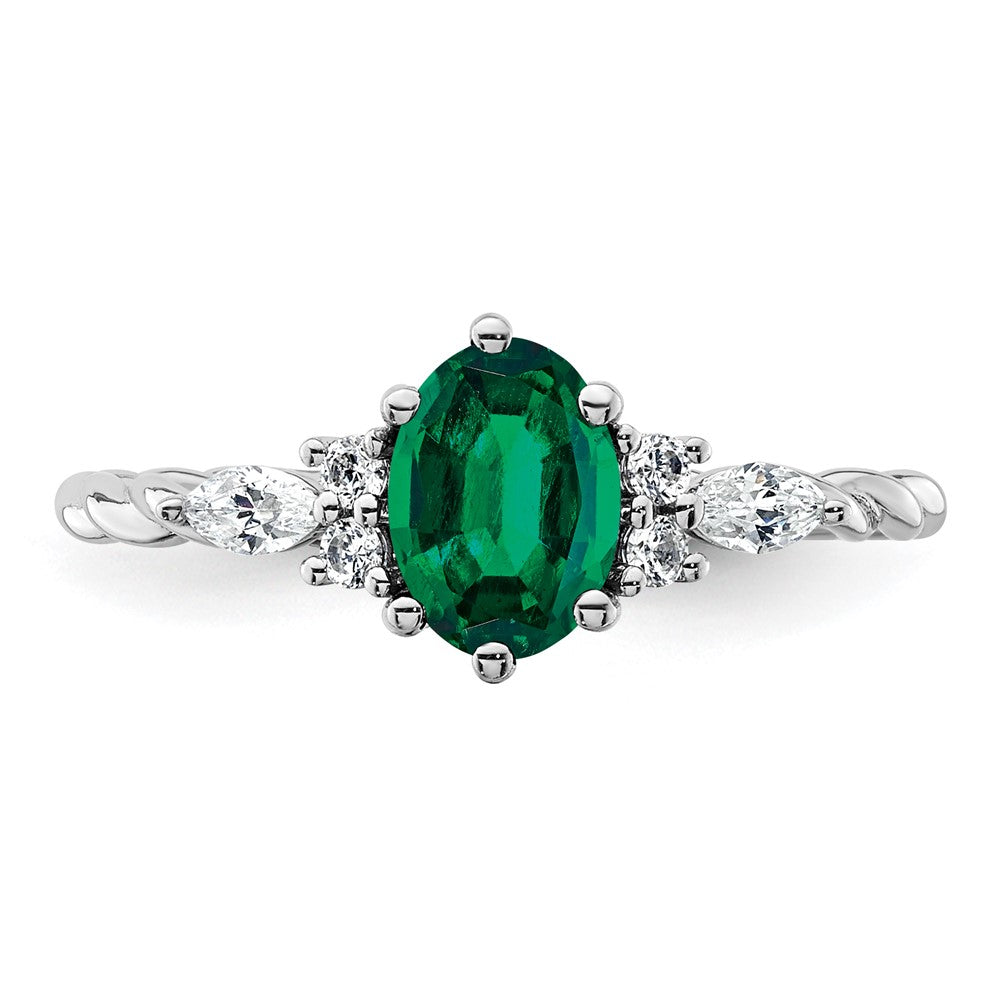 14K White Gold Polished Diamond and Lab Created Emerald Twisted Ring