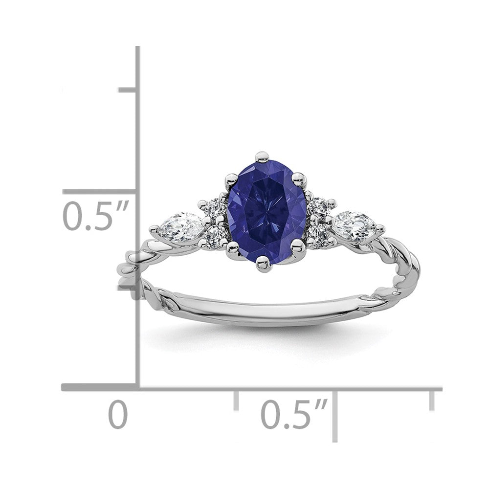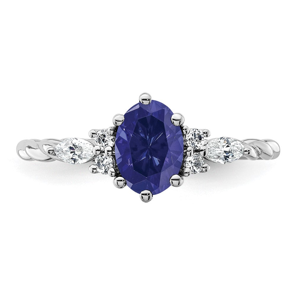 14K White Gold Polished Diamond and Lab Created Sapphire Twisted Ring