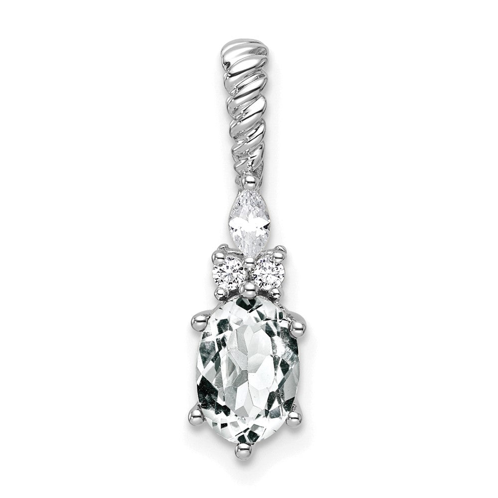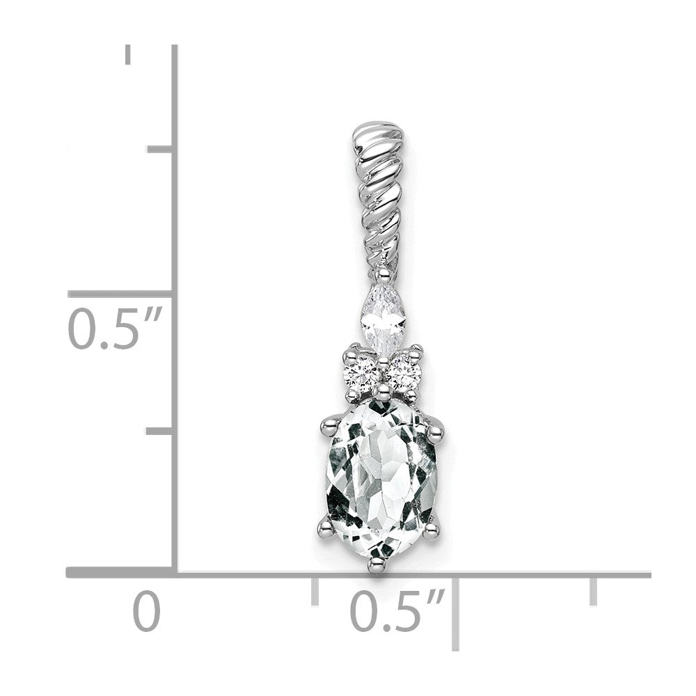 14K White Gold Polished Diamond and White Topaz Twisted Chain Slide
